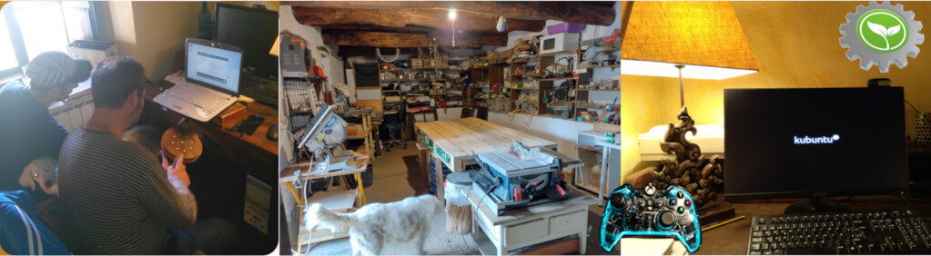Integrados en la naturaleza sin «volver a las cuevas». Combinamos con tecnología, Software Libre, Diseño Web, Comunicación, Bricolaje, Reciclado, Carpintería, Agricultura ecológica, ingenio. Compartimos con intercambios no lucrativos
